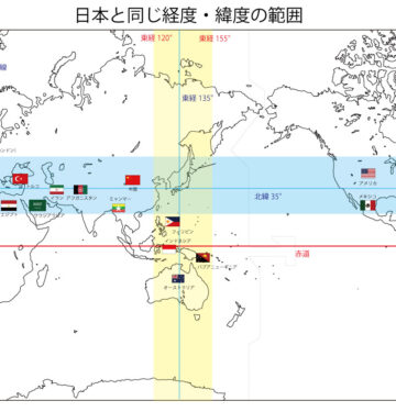 日本と同じ経度・緯度の範囲と主な国々を一枚にまとめてみました 続きを読む