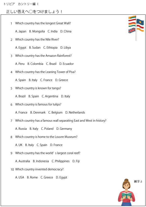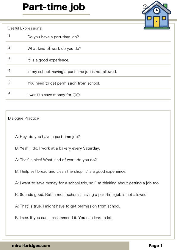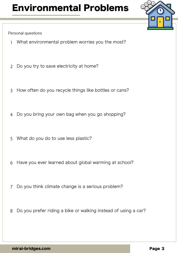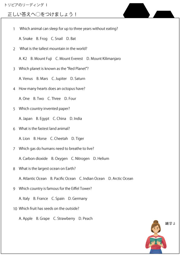様々なトピックについて、レベルに分けてある英会話授業のプリントとなります。