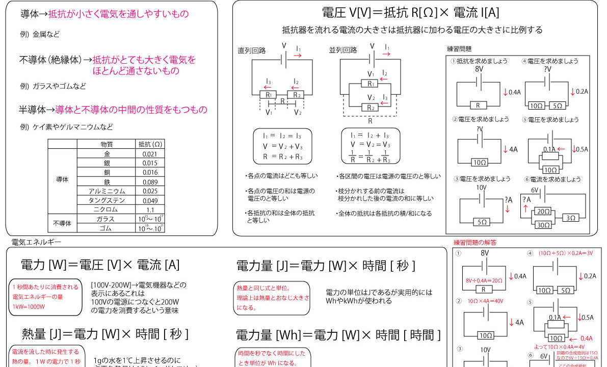 不導体(絶縁体)→抵抗がとても大きく電気をほとんど通さないもの 例) ガラスやゴムなど