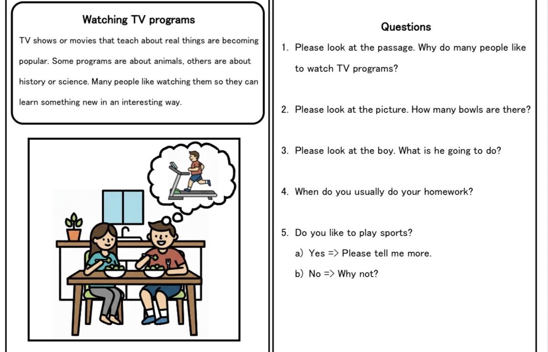 英検3級二次試験練習プリント 2026年2月26日2026年2月26日 / by 投稿者 管理人 英検3級二次試験練習用プリントです。 Watching TV 英検3級二次試験10問セット(300円)はこちら。(BASEのページにとびます) その他の英検プリントはこちら TOPページに戻るはこちら Related posts:英検2級二次試験練習問題社会歴史単語帳⑥社会歴史単語帳⑤歴史 条約一覧平面図形と空間図形年表ポスター世界編年表ポスター時事問題2026頭の体操(脳トレ問題)