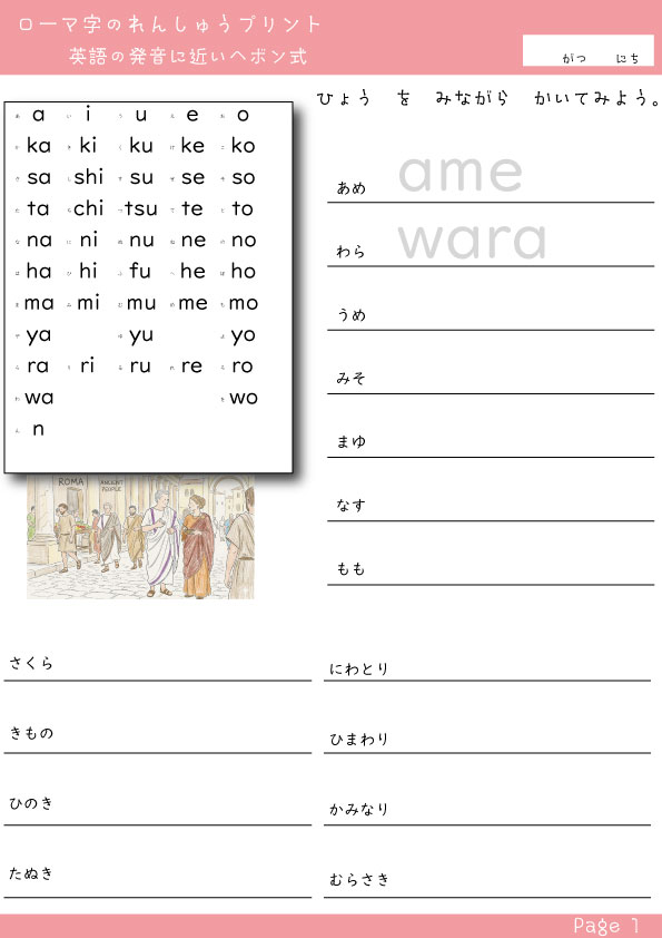小学生 ローマ字 ローマ字のワークシート (ヘボン式) ローマ字練習(4枚プリント) ローマ字なぞり書き (2枚) ローマ字練習 (6枚) ローマ字表 オノマトペで覚えるローマ字 日本の文化を伝えるローマ字 都道府県名をローマ字で 歴史の時代をローマ字で 年号と歴史上の有名人 英会話topページはこちら ブリッジぷりんと topページはこちら