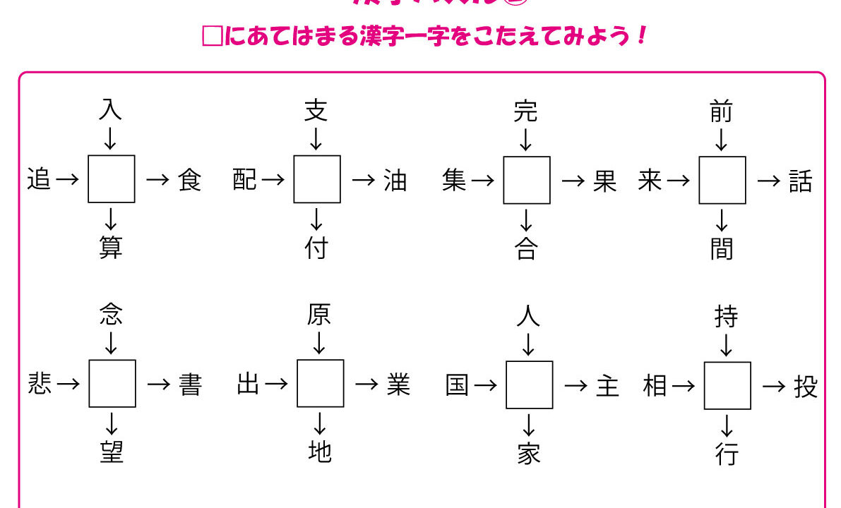 矢印の方向に読んでできる熟語を作ってください。