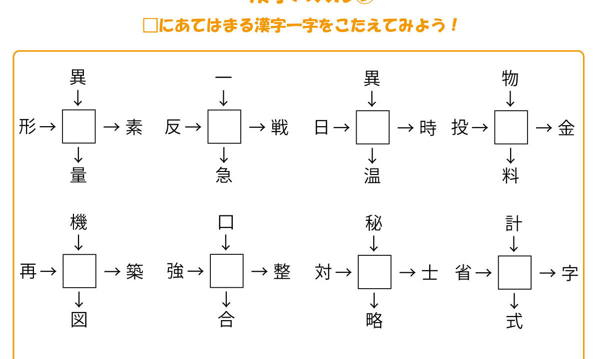 矢印の方向に読んでできる熟語を作ってください。