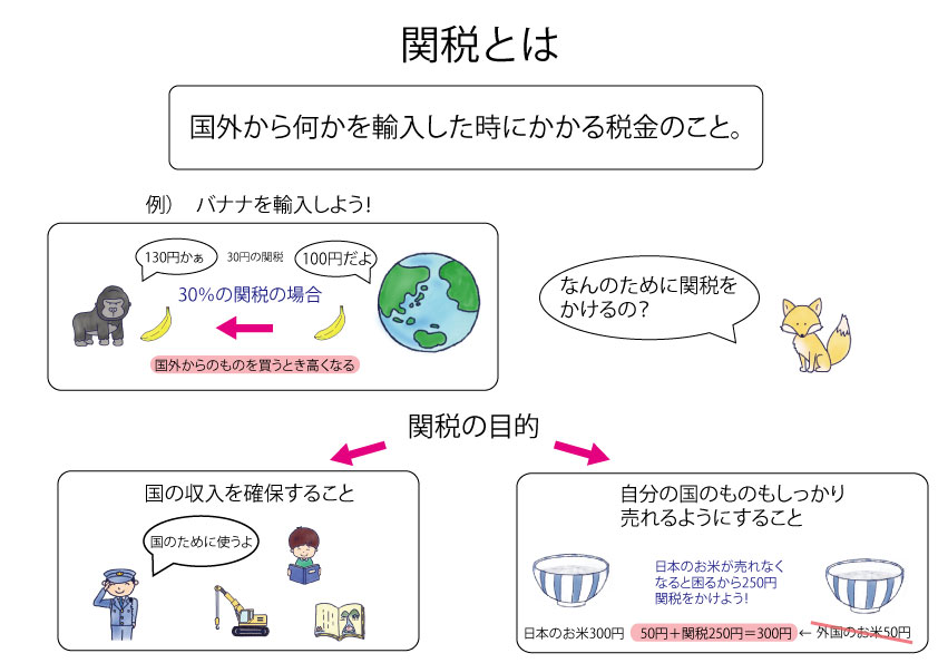 関税とは? 2025年4月12日2025年4月12日 / by 投稿者 管理人 関税とは・・・・国外から何かを輸入した時にかかる税金のことをいいます。 関税の目的としては・国の収入を確保すること・自分の国のものもしっかり 売れるようにすること などがあります。 関税とはのプリントはこちら その他の時事問題はこちら TOPページに戻るはこちら Related posts:歴史文化視力検査ギリシャ文字視力検査勉強ガチャ中3編フランシスコ・ベーコンの「4 つのイドラ」頭の体操(脳トレ問題)経済ポスター歴史文化パズルゲーム中学歴史にでてくる中国の指導者中学歴史に出てくるアメリカの大統領天体ポスター