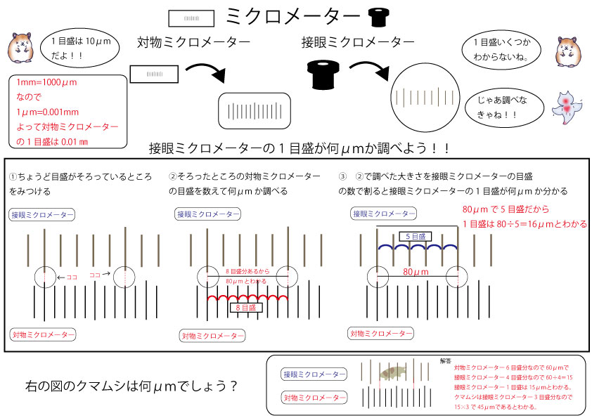 接眼ミクロメーターの1 目盛が何μmか調べよう!!