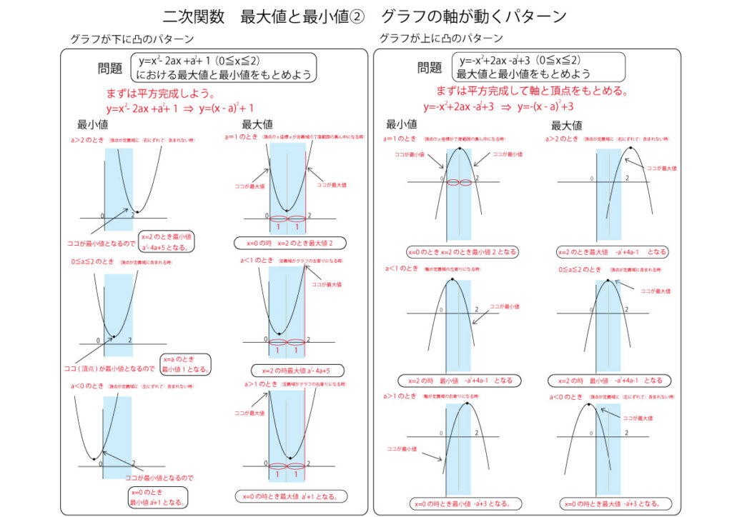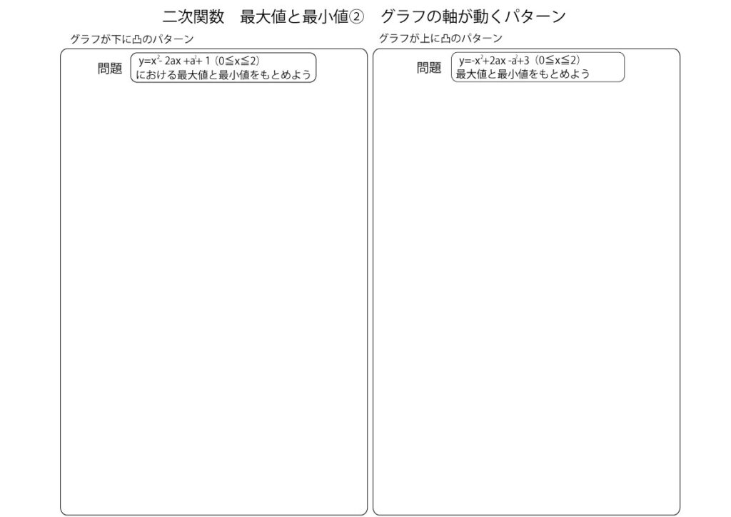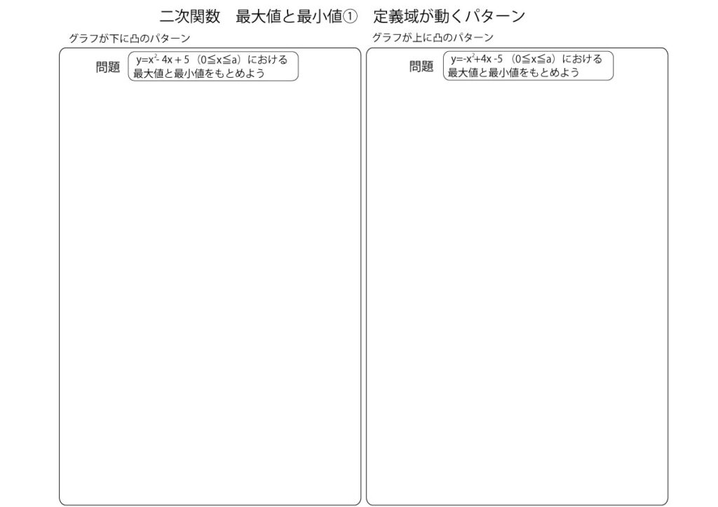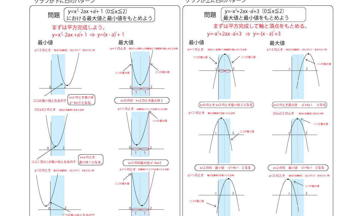 二次関数最大値と最小値の問題 2025年6月27日2025年7月1日 / by 投稿者 管理人 高校数学の二次関数の単元における最大値と最小値を求める問題のプリントです。 パターン① 片方の定義域が動く問題 解説はこちら パターン②軸が動く問題 解説はこちら その他の学習プリントはこちら TOPページに戻るはこちら Related posts:歴史文化視力検査ギリシャ文字視力検査勉強ガチャ中3編フランシスコ・ベーコンの「4 つのイドラ」頭の体操(脳トレ問題)経済ポスター歴史文化パズルゲーム中学歴史にでてくる中国の指導者中学歴史に出てくるアメリカの大統領天体ポスター