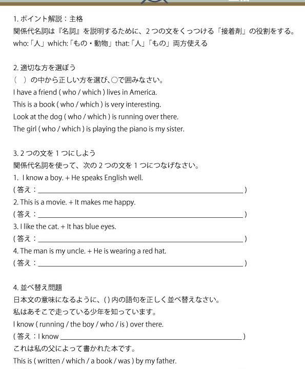 これを使って関係代名詞の作り方が理解できたら、次はこれ!