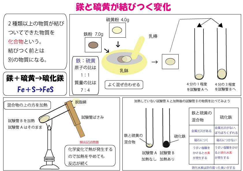 鉄と硫黄の混合物と硫化鉄の違いについてしっかり整理して覚えましょう。