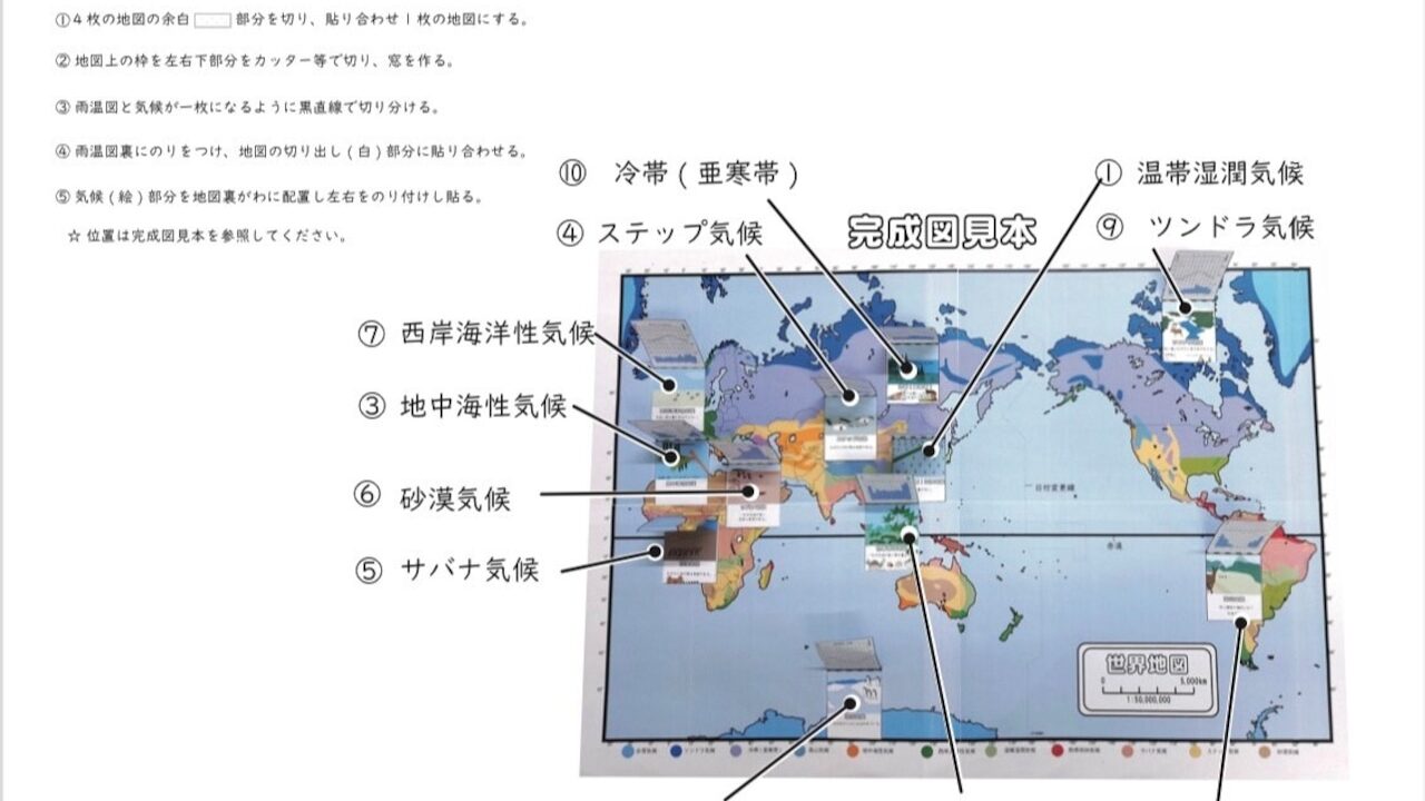 世界の気候区分クラフト 2025年5月24日2025年8月13日 / by 投稿者 管理人 世界の気候区分クラフトです。 めくるとその地域の特徴や雨温図が出てくる仕組みです。 完成図はこんな感じ A3完成版 このようにプリントアウトしてつなげてA3サイズにしていきます! A4用紙のここから購入できますー コクヨ コピー用紙 A4 白色度80% 紙厚0.09mm 500枚 FSC認証 KB-39N created by Rinker コクヨ(KOKUYO) Amazon 楽天市場 世界の気候クラフトはこちら(BASEのページにとびます。) その他の学習プリントはこちら TOPページに戻るはこちら Related posts:歴史文化視力検査ギリシャ文字視力検査勉強ガチャ中3編フランシスコ・ベーコンの「4 つのイドラ」頭の体操(脳トレ問題)経済ポスター歴史文化パズルゲーム中学歴史にでてくる中国の指導者中学歴史に出てくるアメリカの大統領天体ポスター