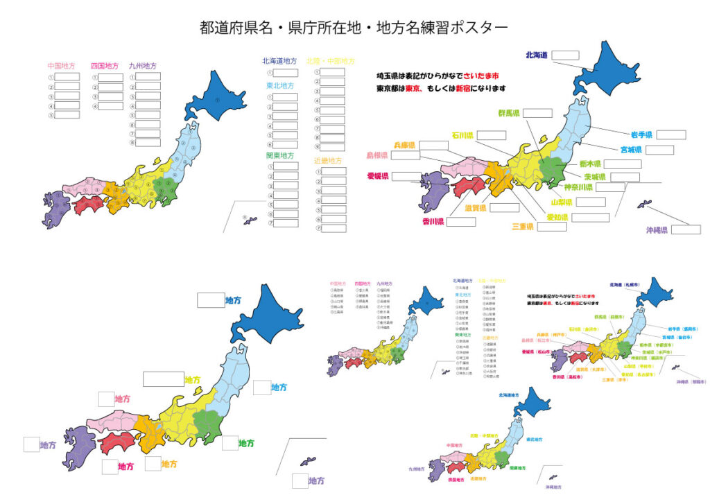 都道府県・県庁所在地・地方名練習ポスター