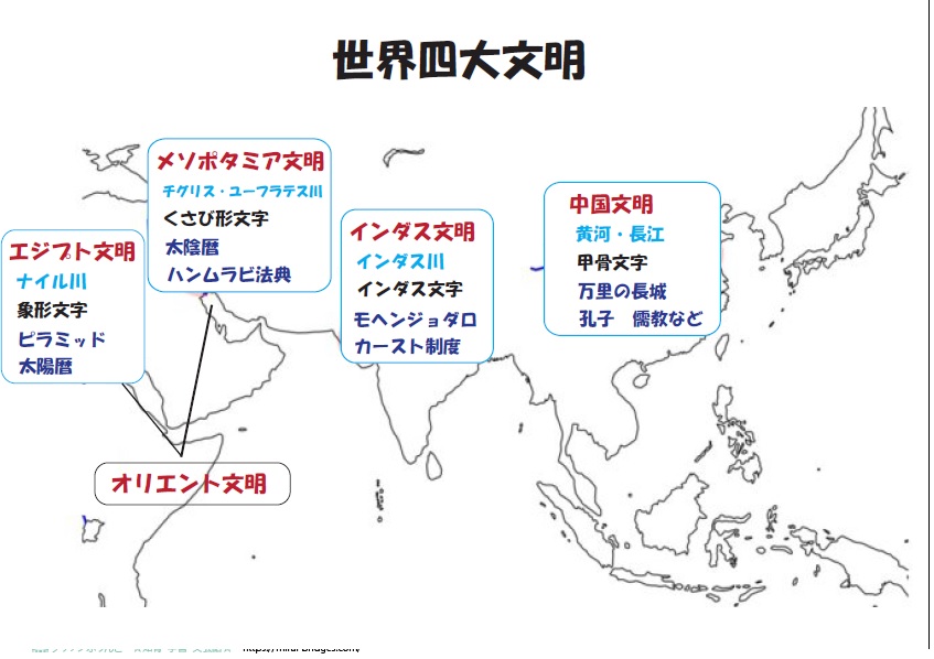 ※以前は四大文明と呼ばれていましたが現在は古代文明と表記がかわっています。